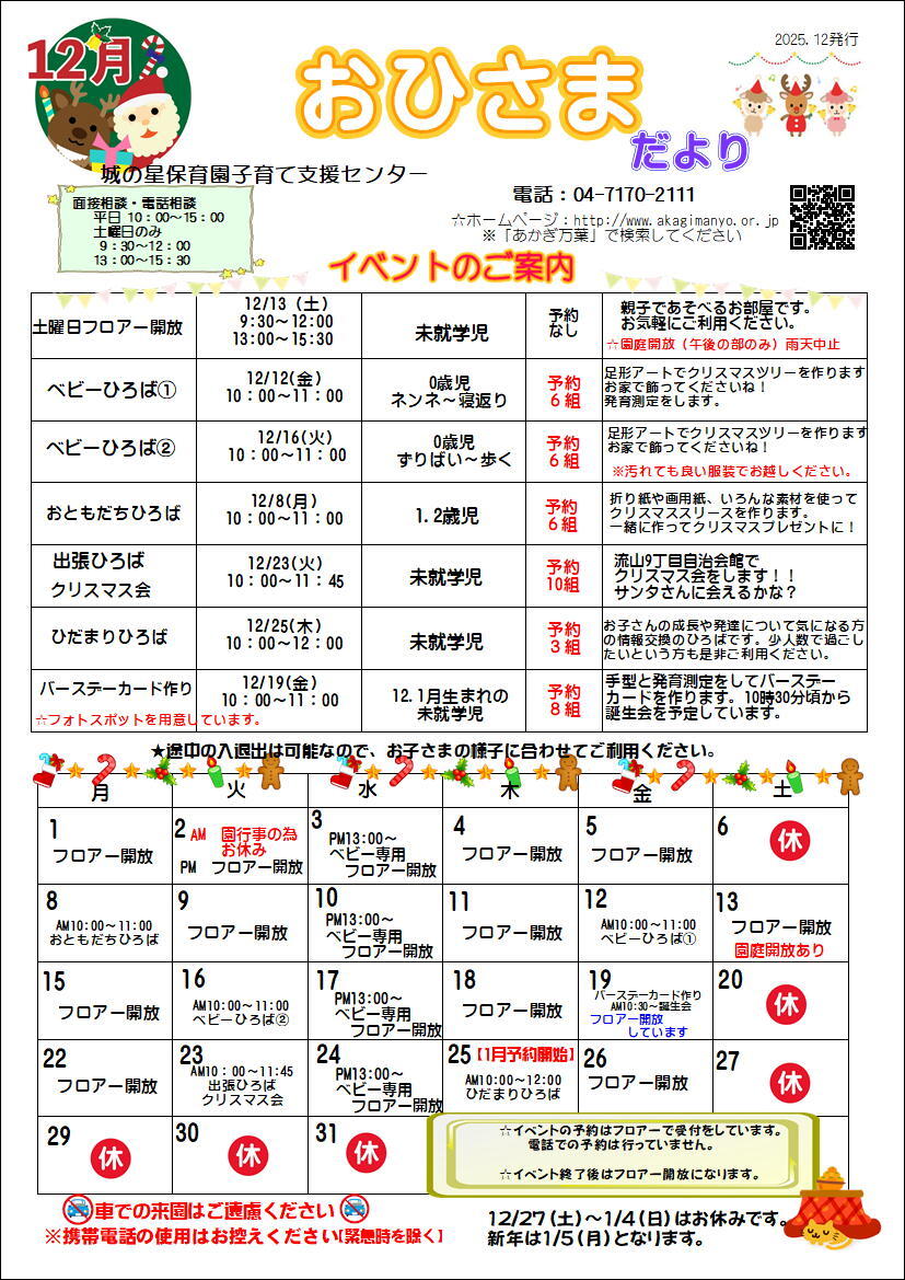 さまざまなイベントも企画しています。ぜひ、お子さんと一緒に参加してください♪詳しいイベント内容は「おひさまだより」をご覧ください。アットホームな雰囲気ですので、お子さんと一緒に遊びに来てくださいね♪