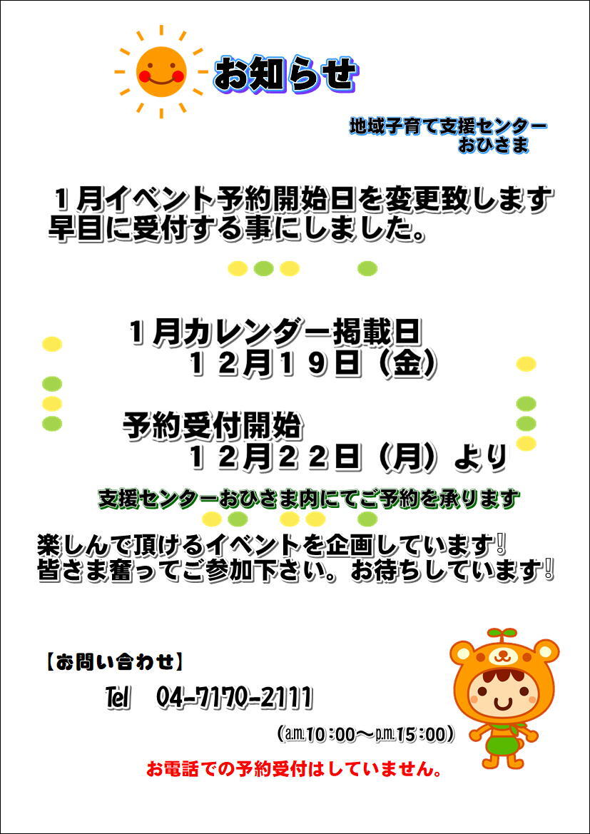 おともだちひろば1月19日(月)10:00~11:00