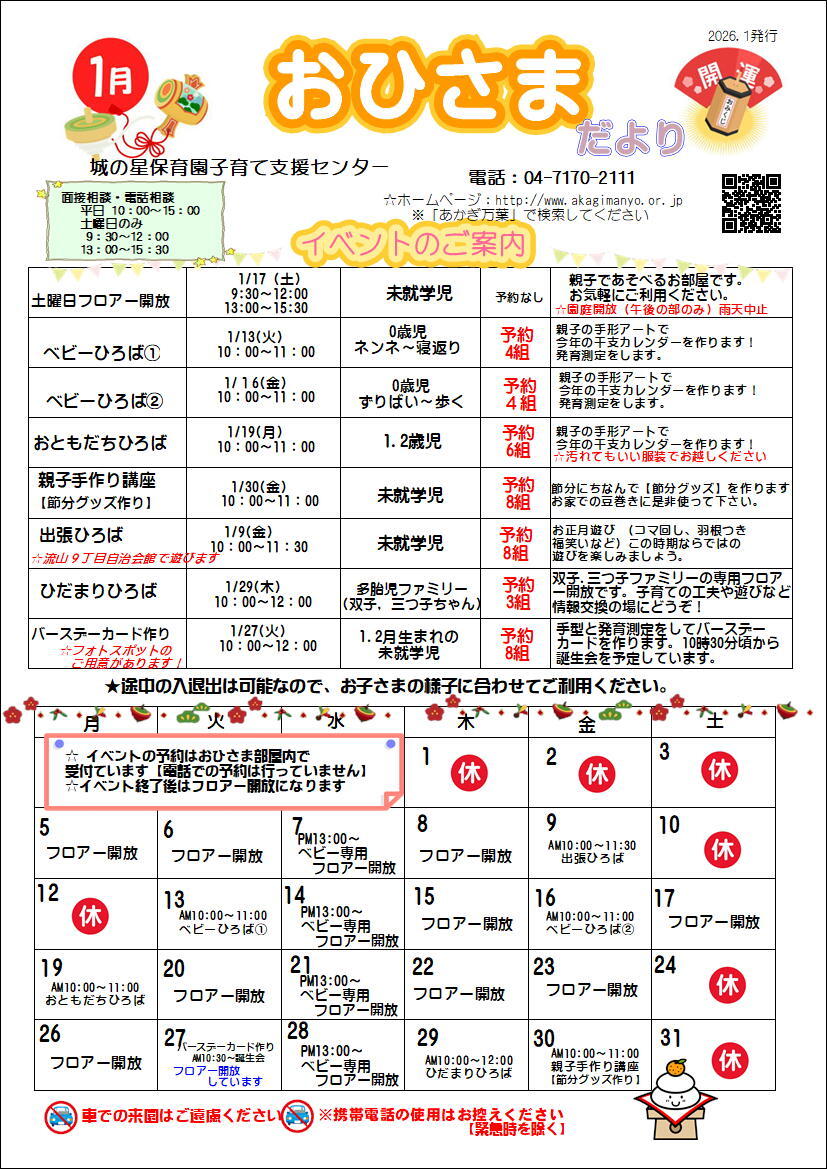 ベビーひろば① 1月13日(火)10:00~11:00